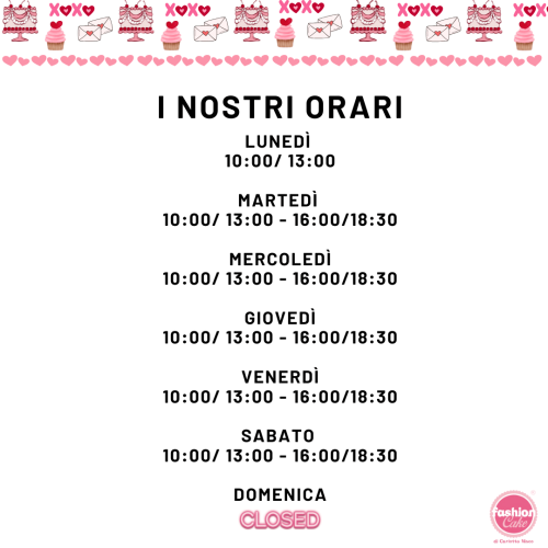 Gli orari del negozio possono variare nei giorni FESTIVI e nel periodo ESTIVO.